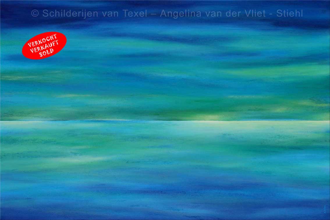 Blauw Groene Zee Texel. Acrylverf op katoen 100x150cm. (verkocht)