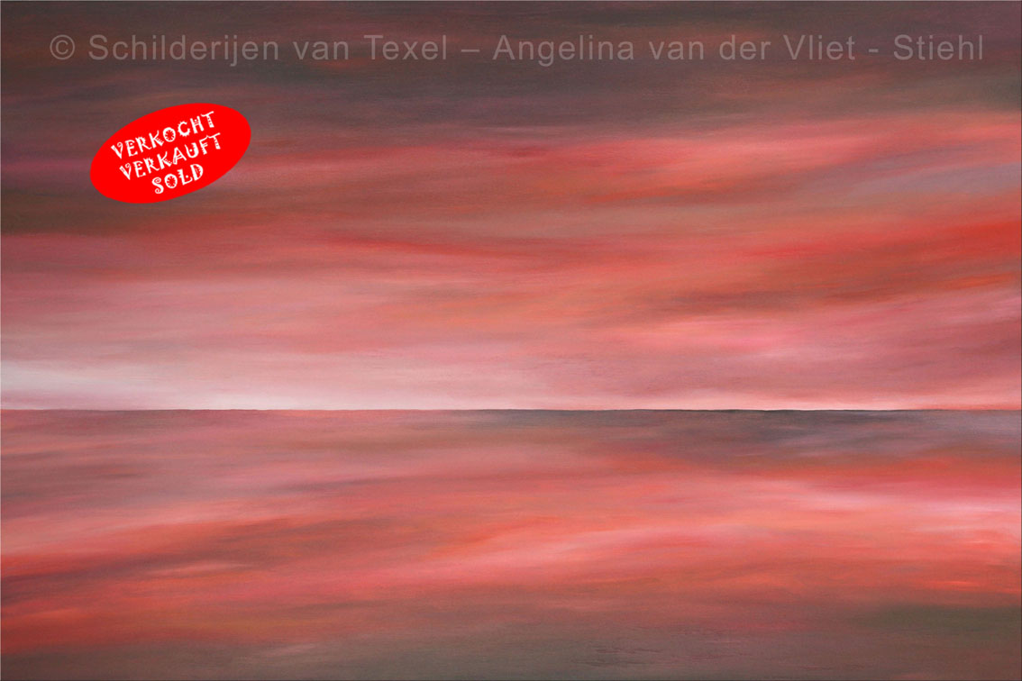 Oranje Roze Paarse Zee Texel. Acrylverf op katoen 80x120cm. (verkocht)