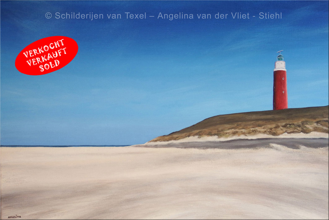 De Texelse Vuurtoren. Acrylverf op katoen 40x60cm. (verkocht)