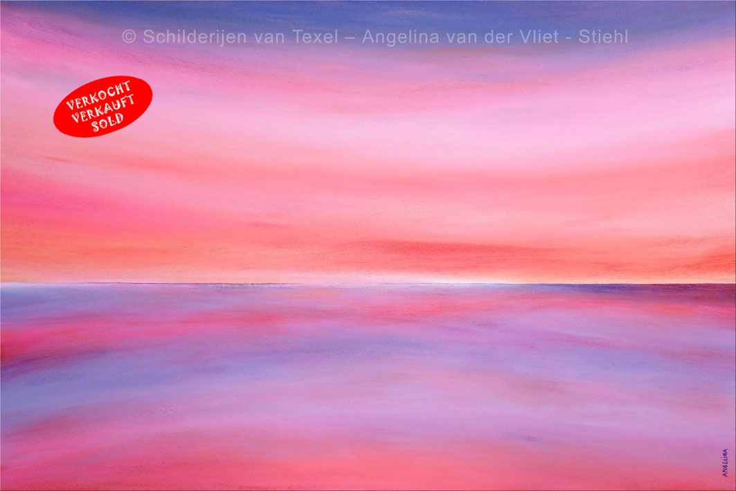Oranje Roze Paarse Zee Texel. Acrylverf op katoen 80x120cm. (verkocht)