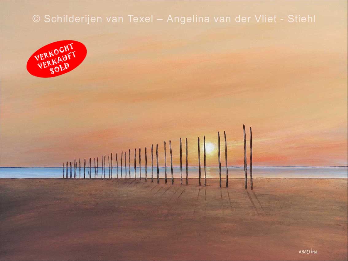 Het Paal 33 strand en de Steiger van Sil met avondgloed. Acrylverf op katoen 60x80cm.(verkocht)